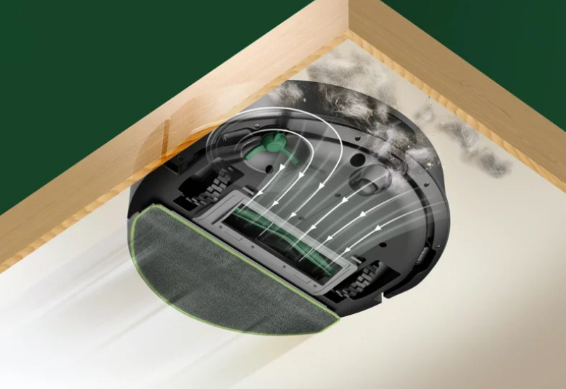 7000 Pa emiş gücü sunar, toz, kırıntı ve diğer kirleri toplamak için çok amaçlı döner fırçaya ve duvar kenarları ile köşeleri süpürmek için yan fırçaya sahiptir.Entegre mikropompalı paspas sistemi sayesinde, su akışını hassas bir şekilde kontrol eder ve temizlik sırasında paspasın ideal ve eşit şekilde nemli kalmasını sağlar.