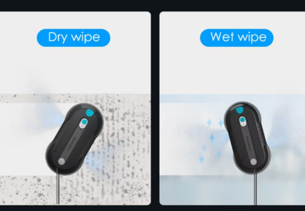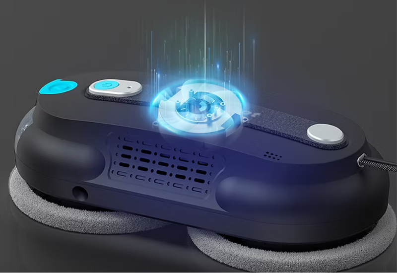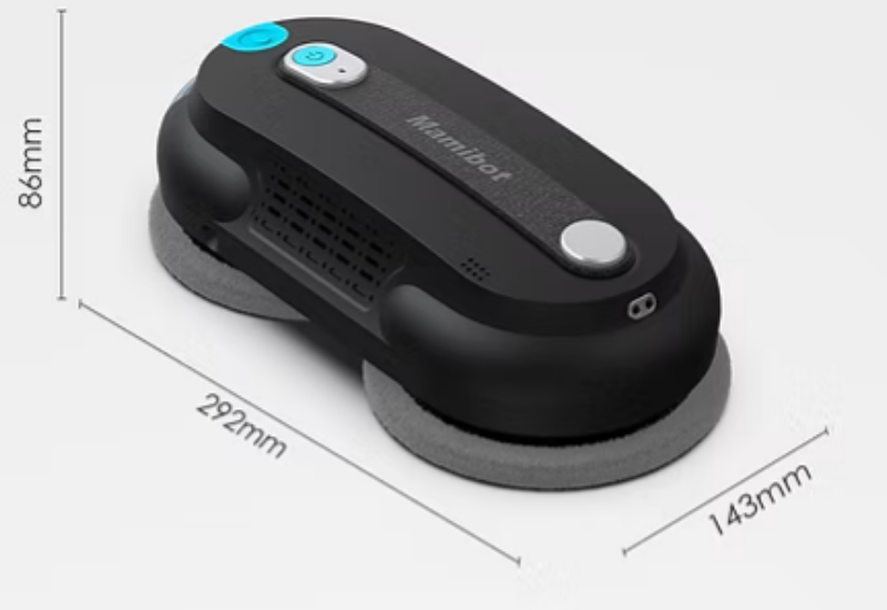 Mamibot iGLASSBOT W168, çift su püskürtme sistemi ve güçlü emiş teknolojisiyle camlarda üstün temizlik performansı sunar.