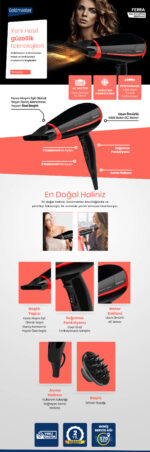 Ferra Profesyonel Katlanabilir Saç Kurutma Fön Makinesi 2400W Profesyonel AC motor ile uzun ömürlü ve güçlü bir kullanım imkanı sunar.